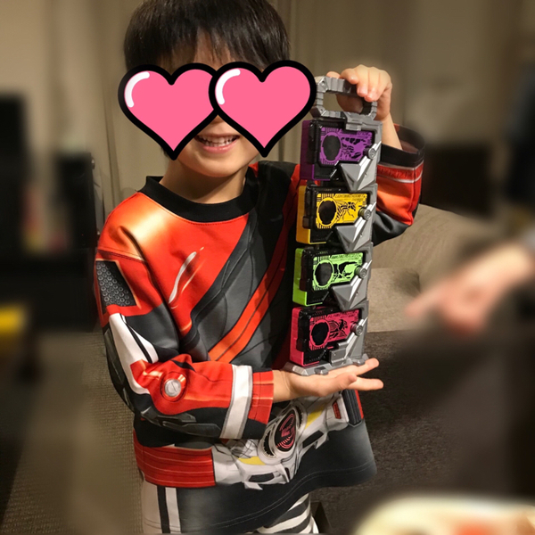 待ち望んでいた仮面ライダーのおもちゃをもらってとてもご機嫌に過ごせました。
